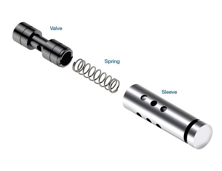 Sleeve manufactured from highly wear-resistant aluminum incorporates the end plug to prevent instability and wear, and provides more sleeve/valve contact for better hydraulic sealing